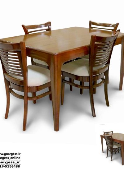 16,800,000 تومانمیز ناهارخوری 4 نفره عروس با صندلی دو تیره پهن چوب راش
