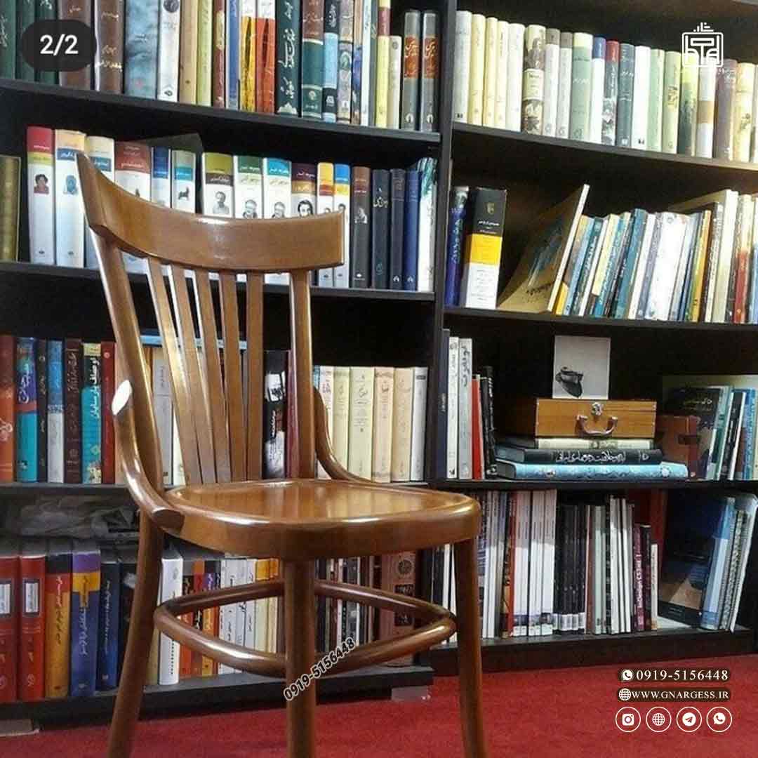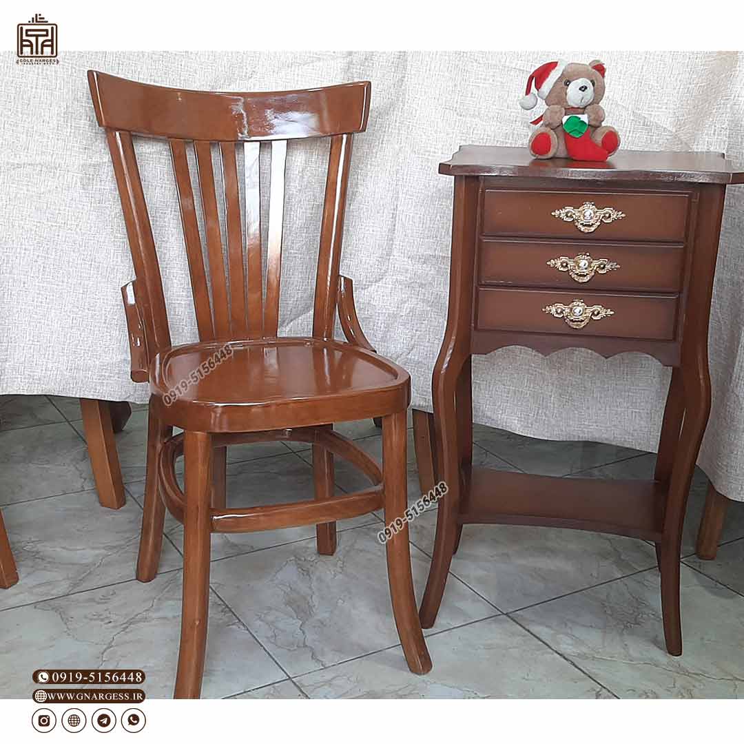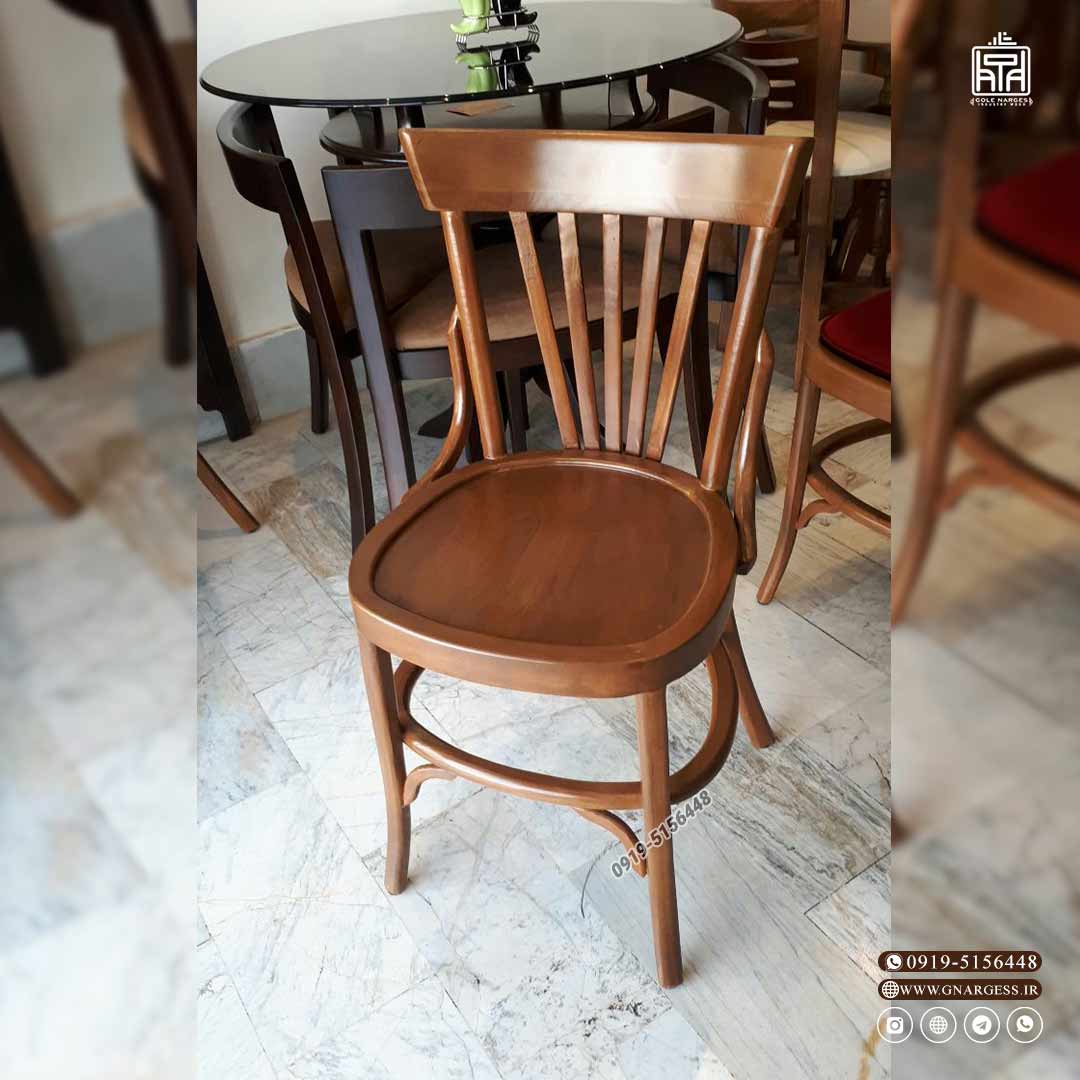 صندلی چوب راش مدل دو تیره پهن تاج چوب