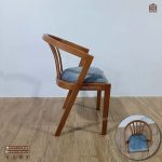 در طراحی از کلاف چوب راش با خمکاری در بخش دسته و تاج بالایی کار و تیرک های پشت کار جلوه خاص را به عرضه میگذارد …