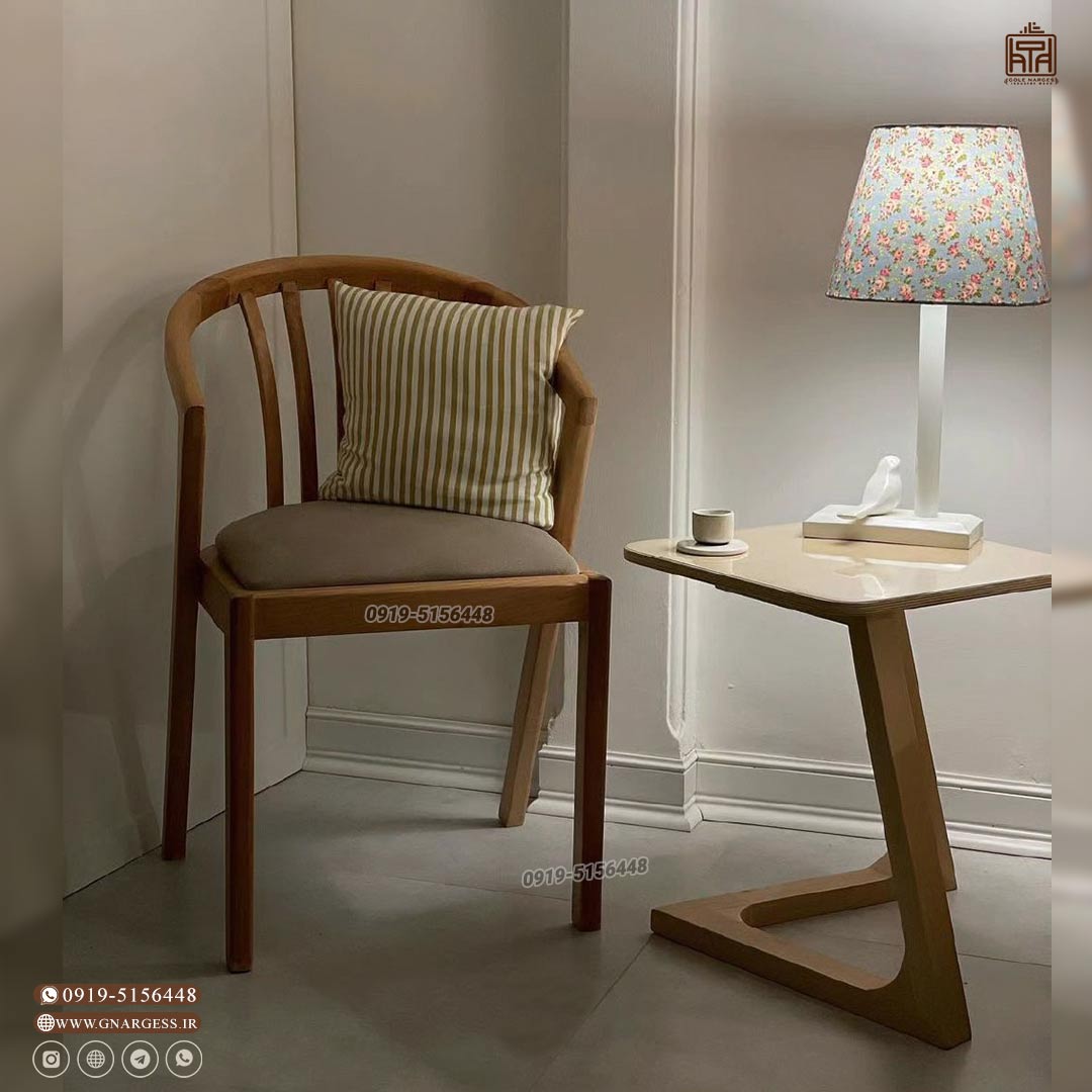 صندلی ناهارخوری دسته دار سبدی از کلاف چوب راش
