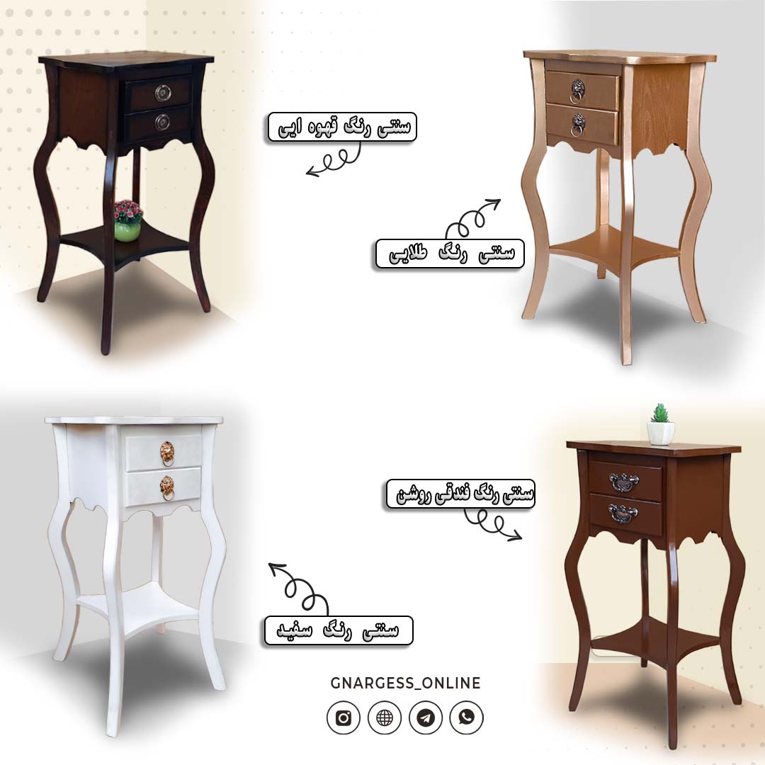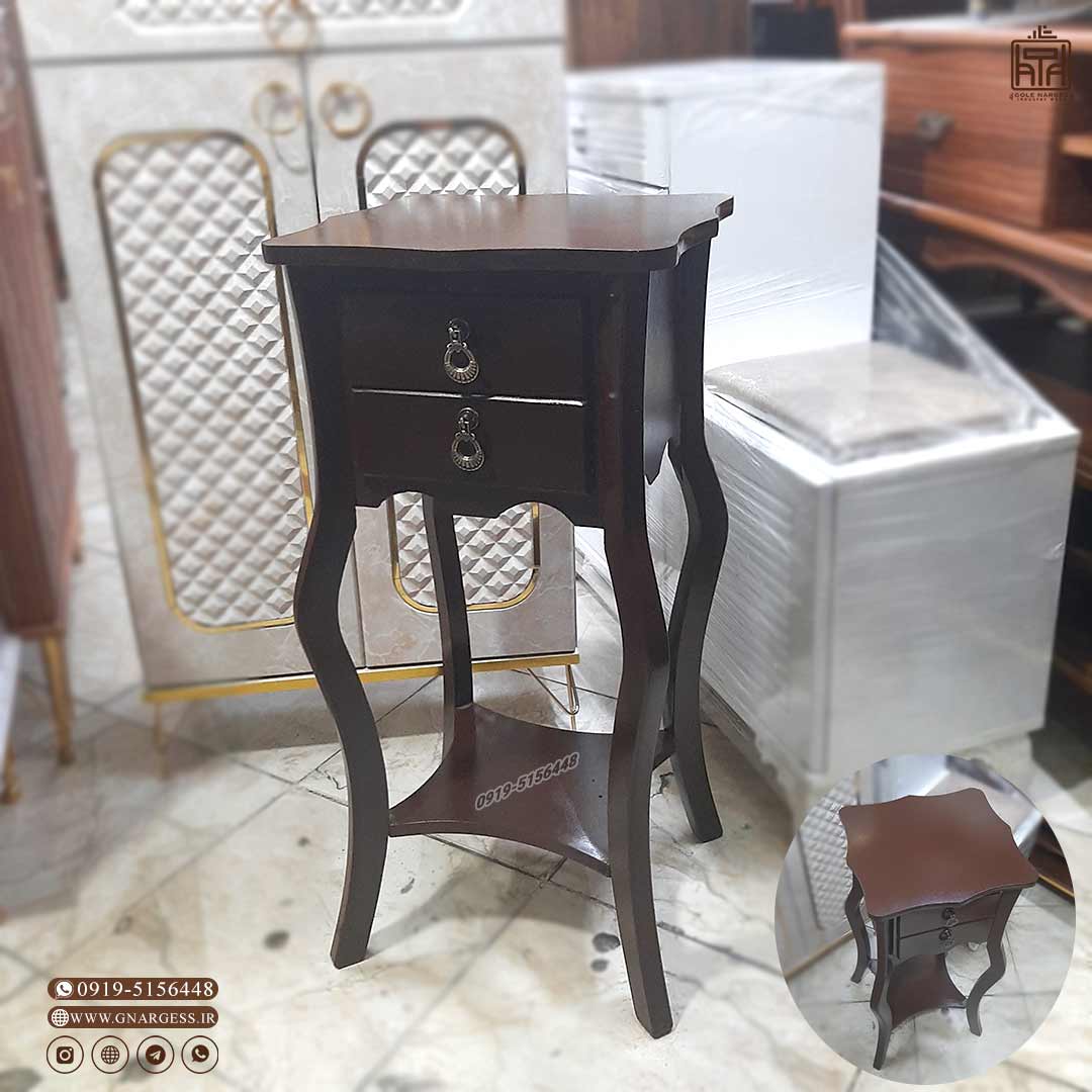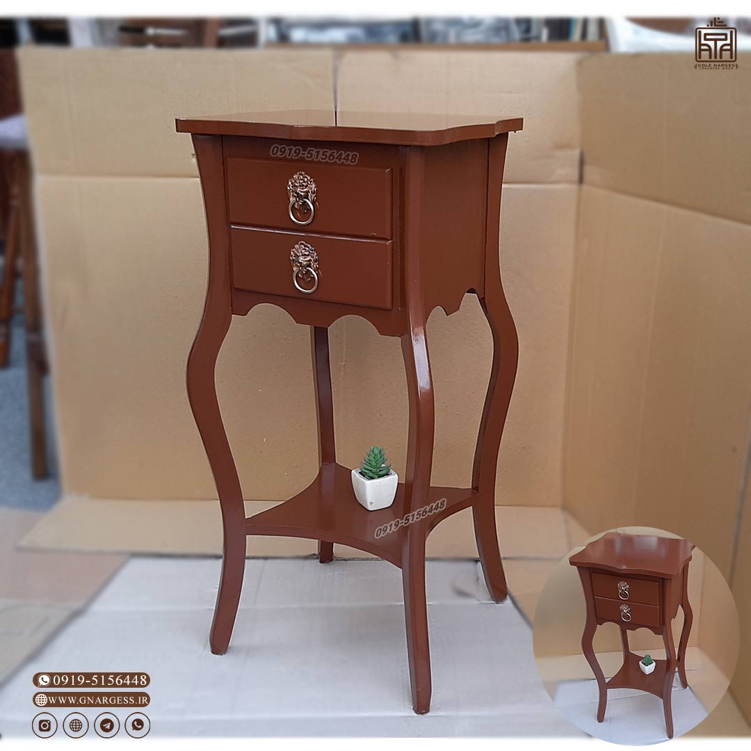 فروش قسطی میز تلفن و میز آباژور مدل خمره ایی دو کشو
