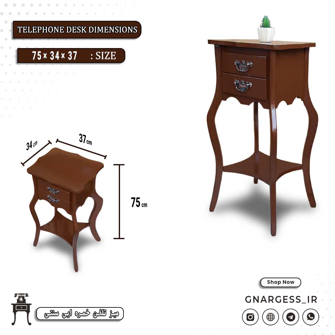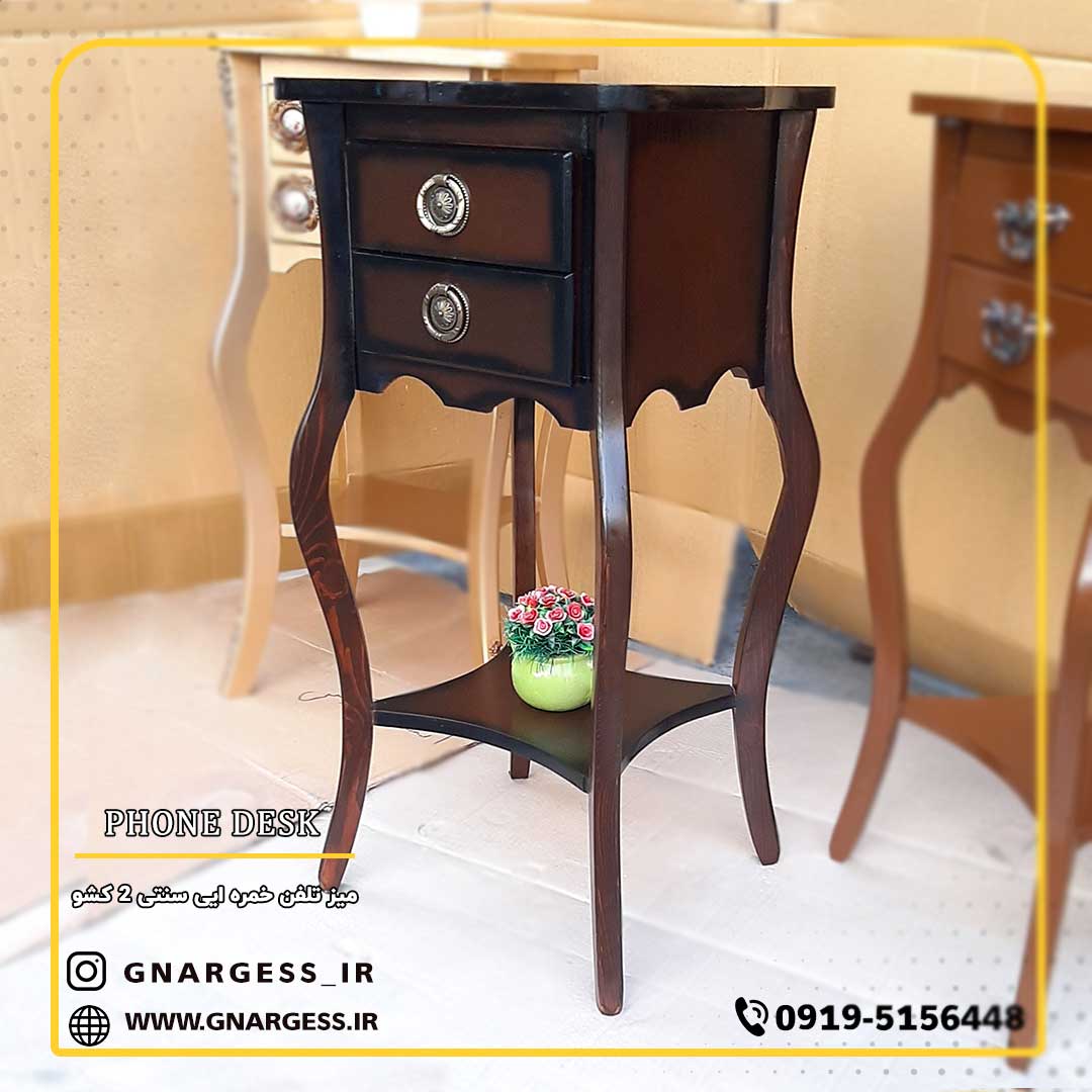 میز تلفن 2 کشو خرچنگی موریس