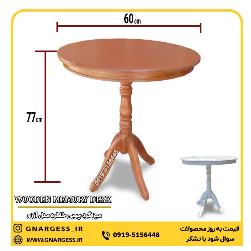 میز خاطره گرد آرزو چوبی با ساخته شده از پایه چوب با صفحه پوششی در سه رنگ متنوع تولید و عرضه میشود این محصول خاص دارای دو ویژگی مهم برای جلب نظر شما مشتریان گرامی میباشد …