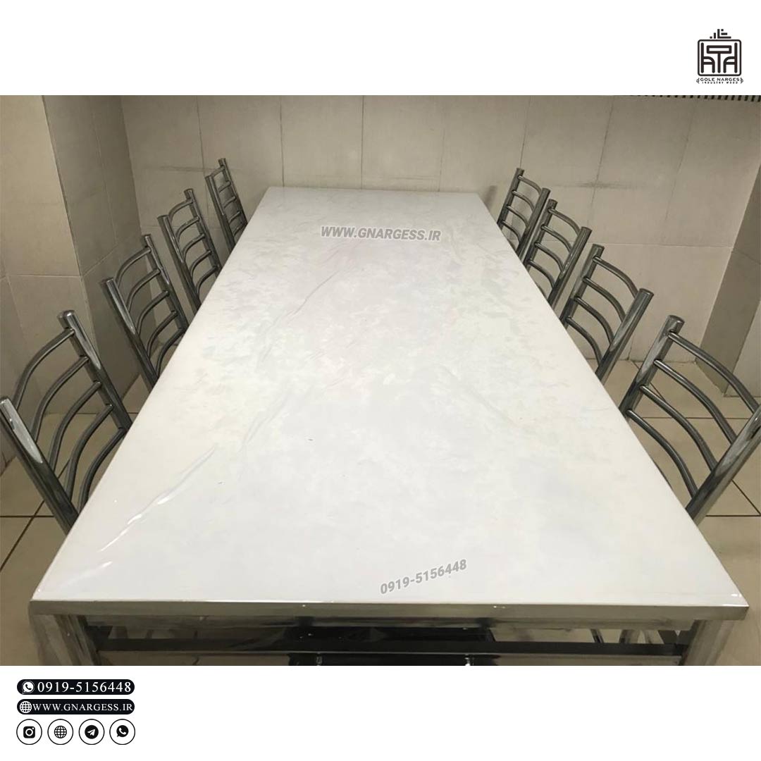 میز های رستورانی طرح بیتا که ساخته شده از فلز لوله با رنگ آبکرم استیل هستن برای ست های 2 الی 8 نفره با
