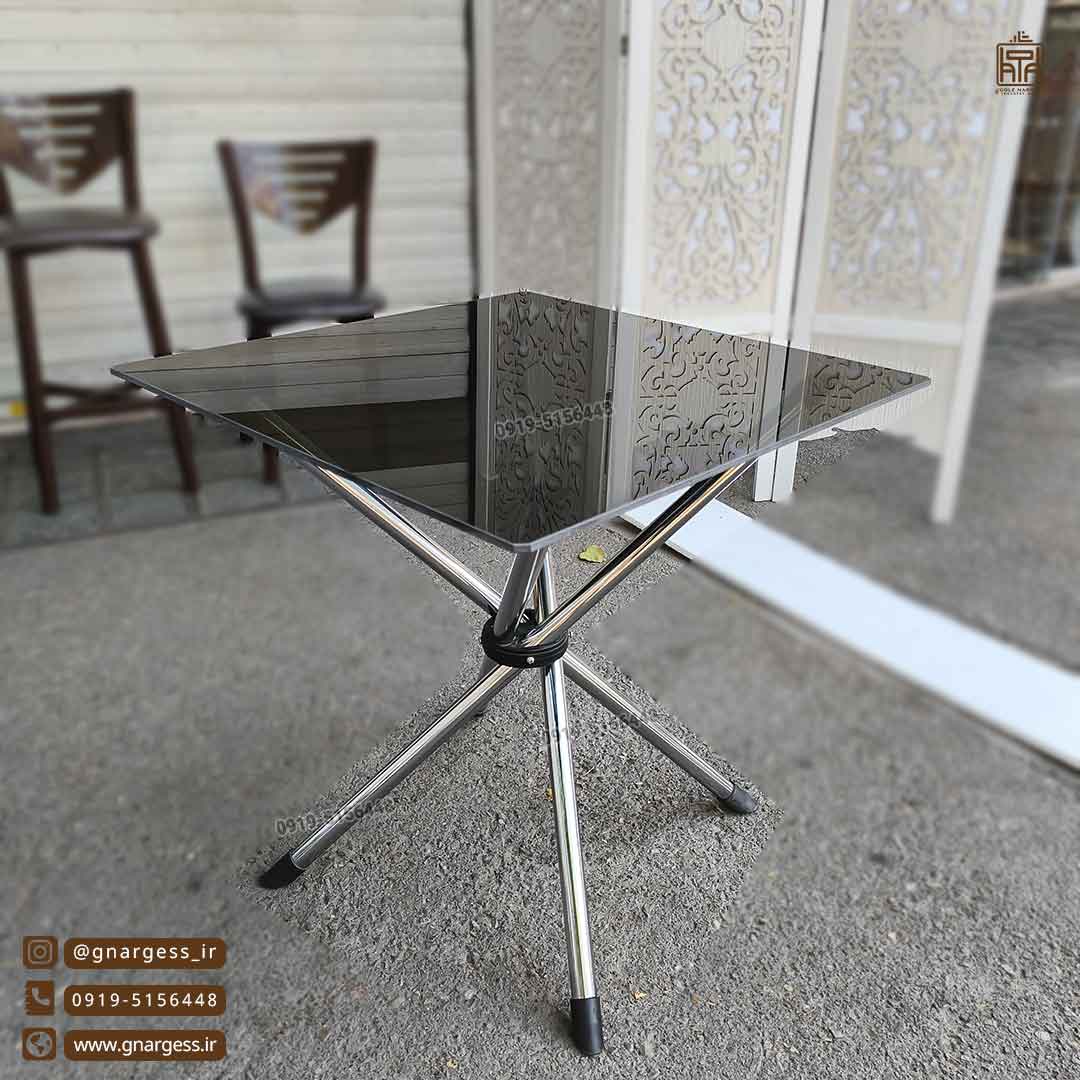 میز فلزی تاشو خورشیدی با صفحات شیشه ایی با پایه تلسکوپی