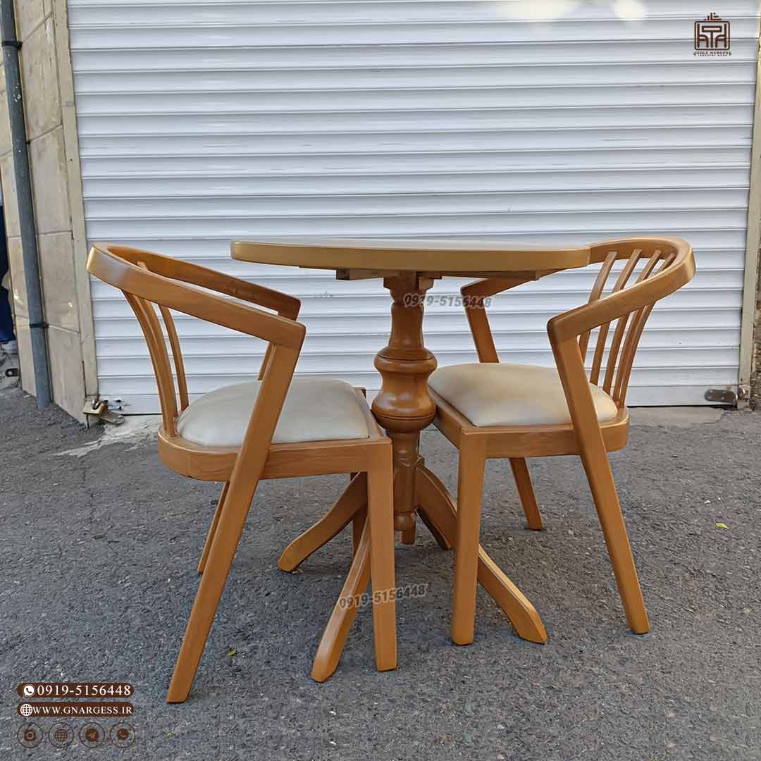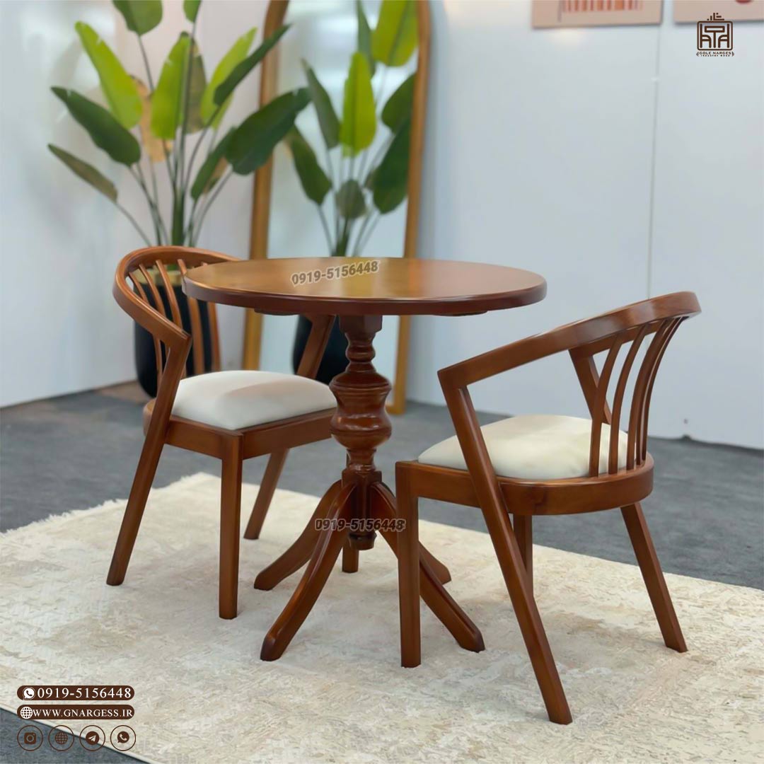 میز و صندلی دو نفره چوبی مدل بوگاتی