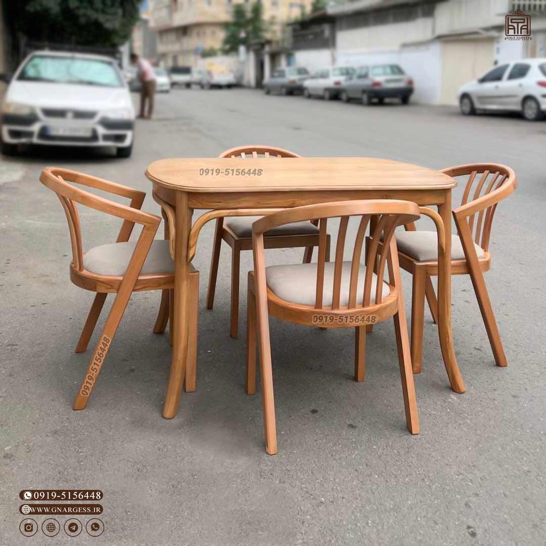 میز ناهار خوری6 نفره مینیمال صندلی فیلی چوبی با میز چوبی ماهور