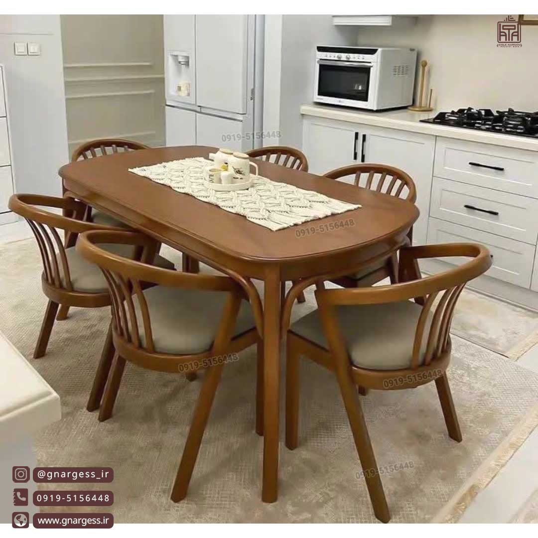 میز ناهارخوری چوبی6 نفره مینیمال نوبل پافدار چوب راش