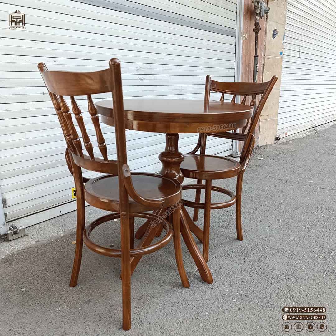 میز و صندلی ناهارخوری گلدانی سه نفره چوبی با صندلی آبشاری