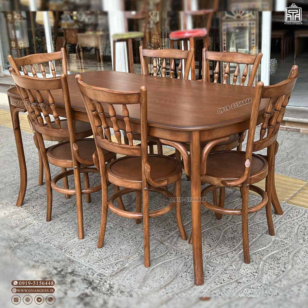 میز ناهارخوری چوب راش صندلی لهستانی خراطی با میز گلرویا