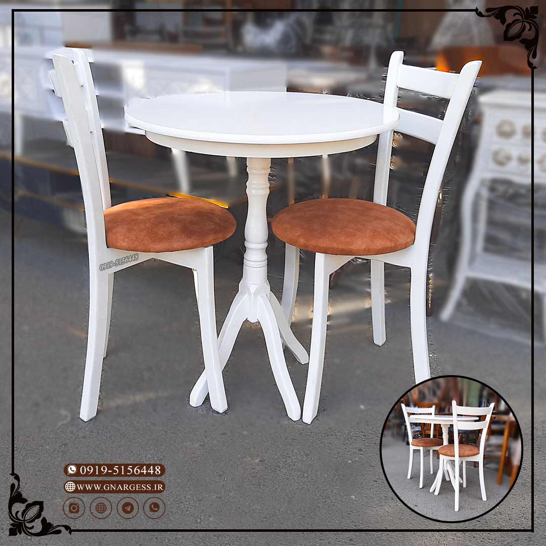 میز و صندلی دو نفره چوبی مدل بوگاتی